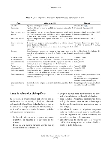 Tabla 2. Casos y ejemplos de citación de referencias y ejemplos en el texto.