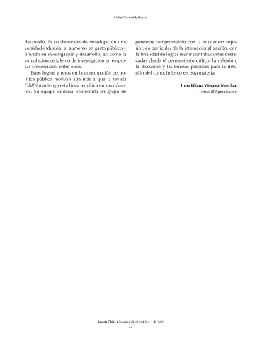 ObIES mantenga esta línea temática en sus núme- Irma Liliana Vásquez Merchán