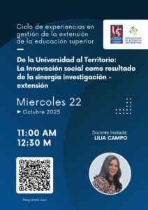 De la Universidad al Territorio: La innovación social como resultado de la sinergia investigación – extensión octubre 27, 2025 No hay comentarios